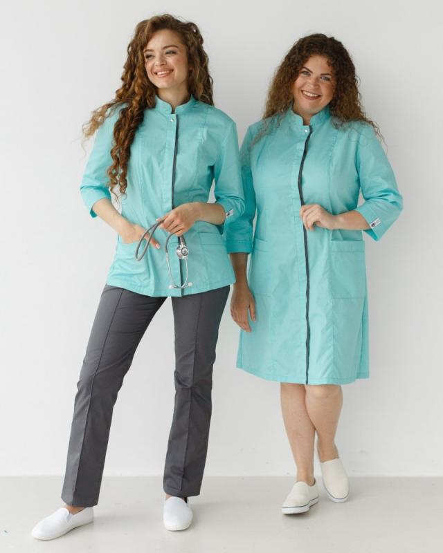 Досить тривалий період існував стереотип, що халат має бути виключно білим і без зайвих деталей. Поступово стали від цього відходити і в каталозі можна побачити багато пропозицій.