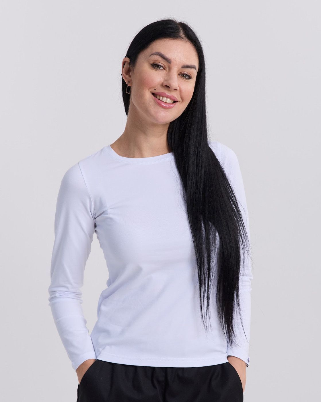 Жіночий лонгслів можна носити під улюблену медичну сорочку або жилет з нашого асортименту, або ж як самостійний елемент робочого гардеробу.