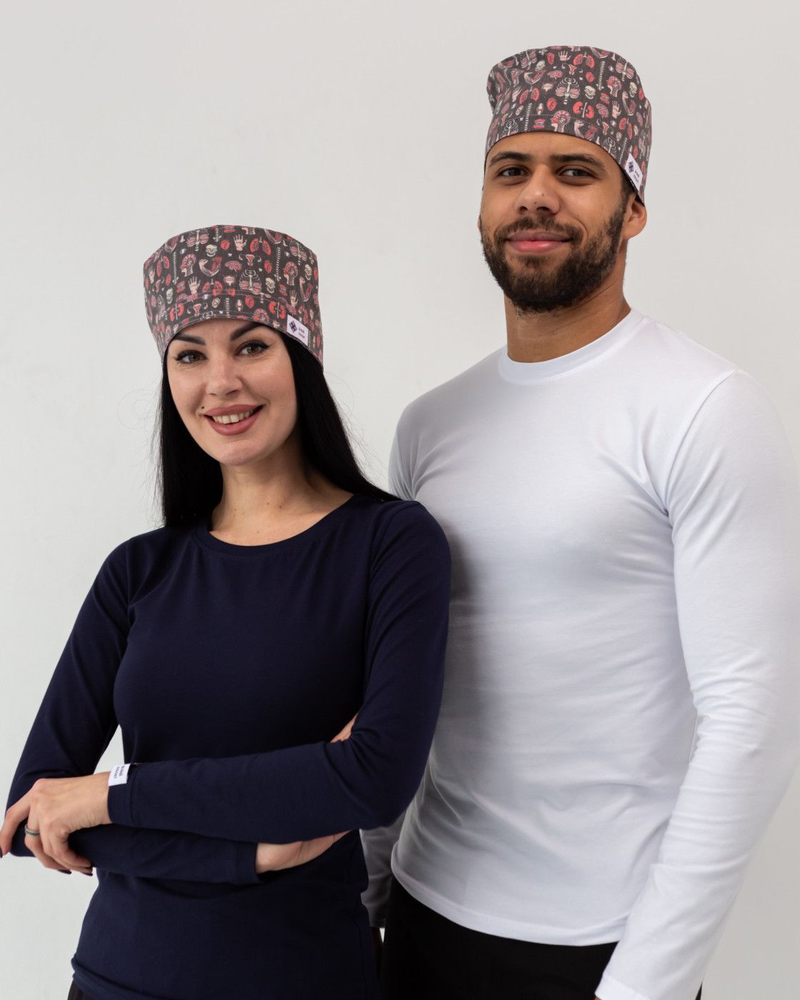 Асортимент медичних шапочок представлений у багатьох різновидах та може бути виготовлений з тканини Terry Cotton, або Котон Принт та Котон «Еліт». Тип тканини залежить від фасону та принту.