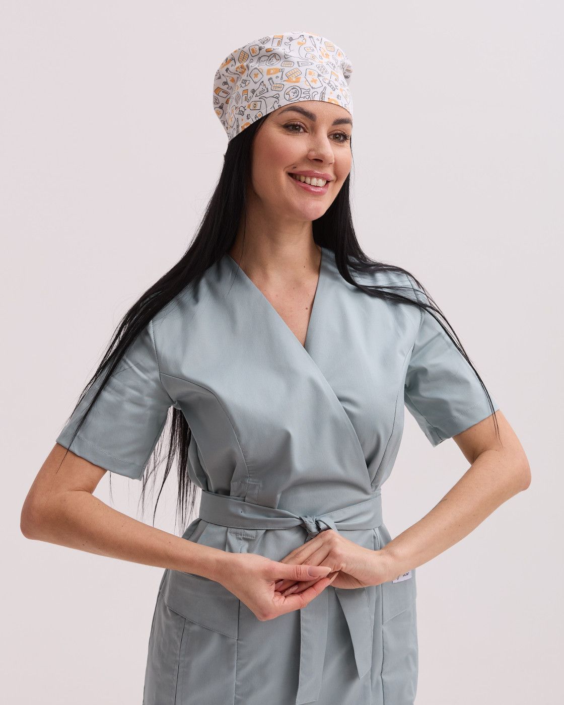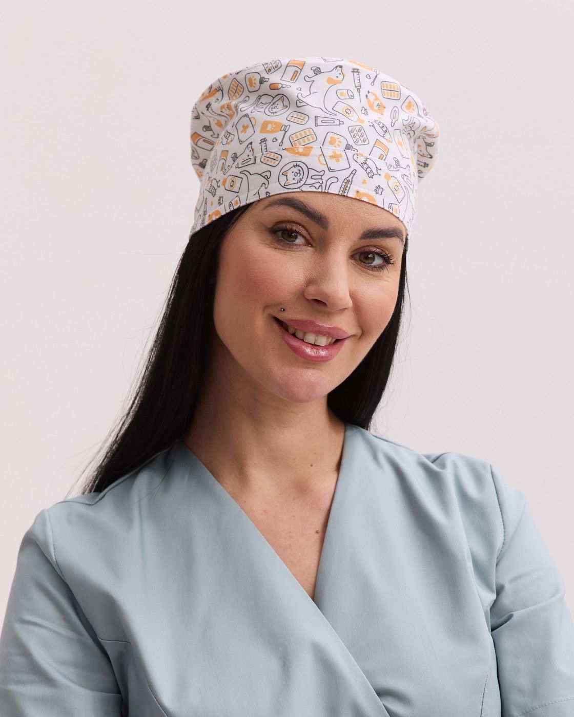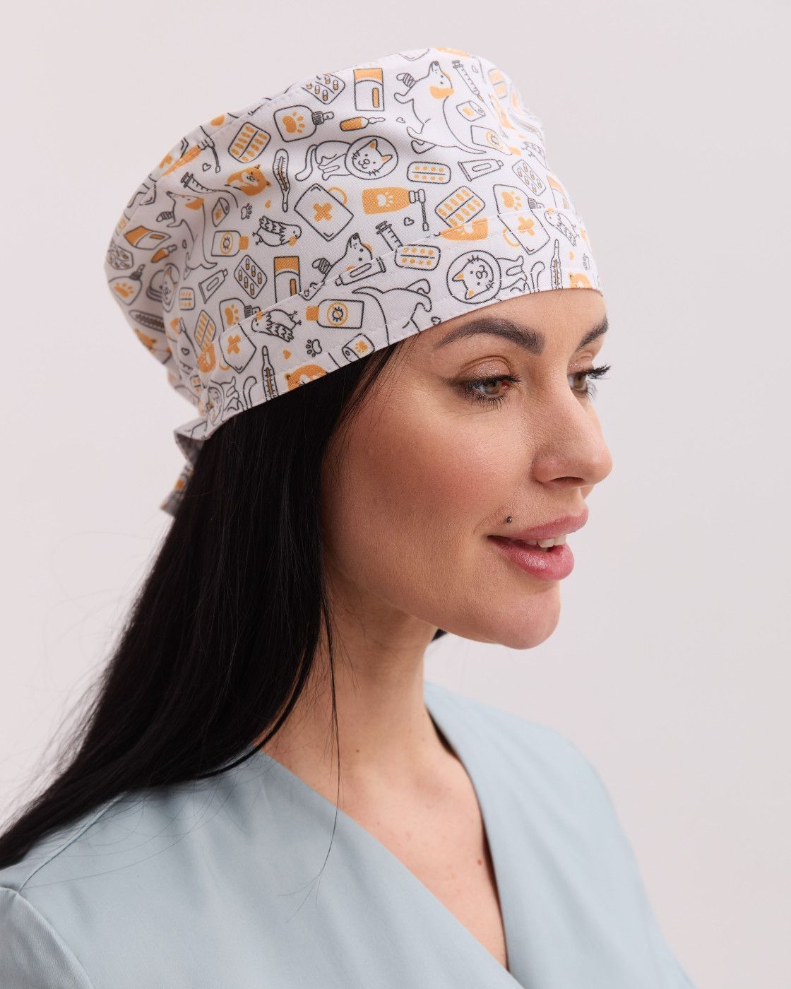 Медична класична шапочка на зав'язках з принтом CatDog
