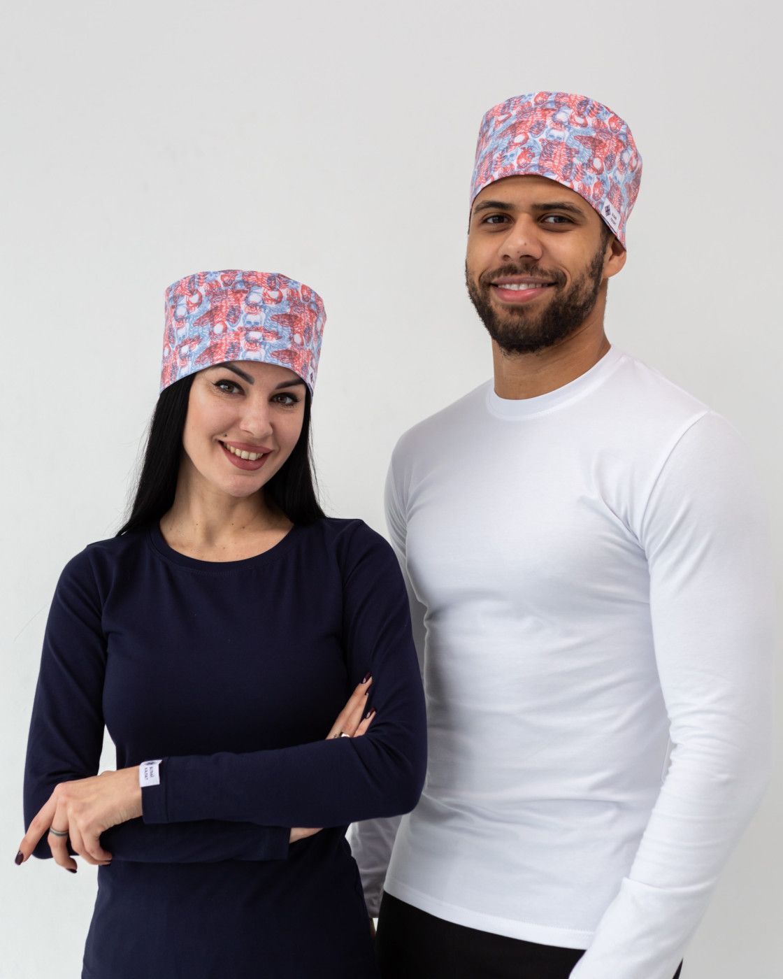 Асортимент медичних шапочок представлений у багатьох різновидах та може бути виготовлений з тканини Terry Cotton, або Котон Принт та Котон «Еліт». Тип тканини залежить від фасону та принту.