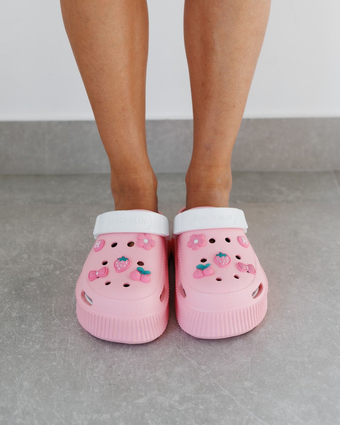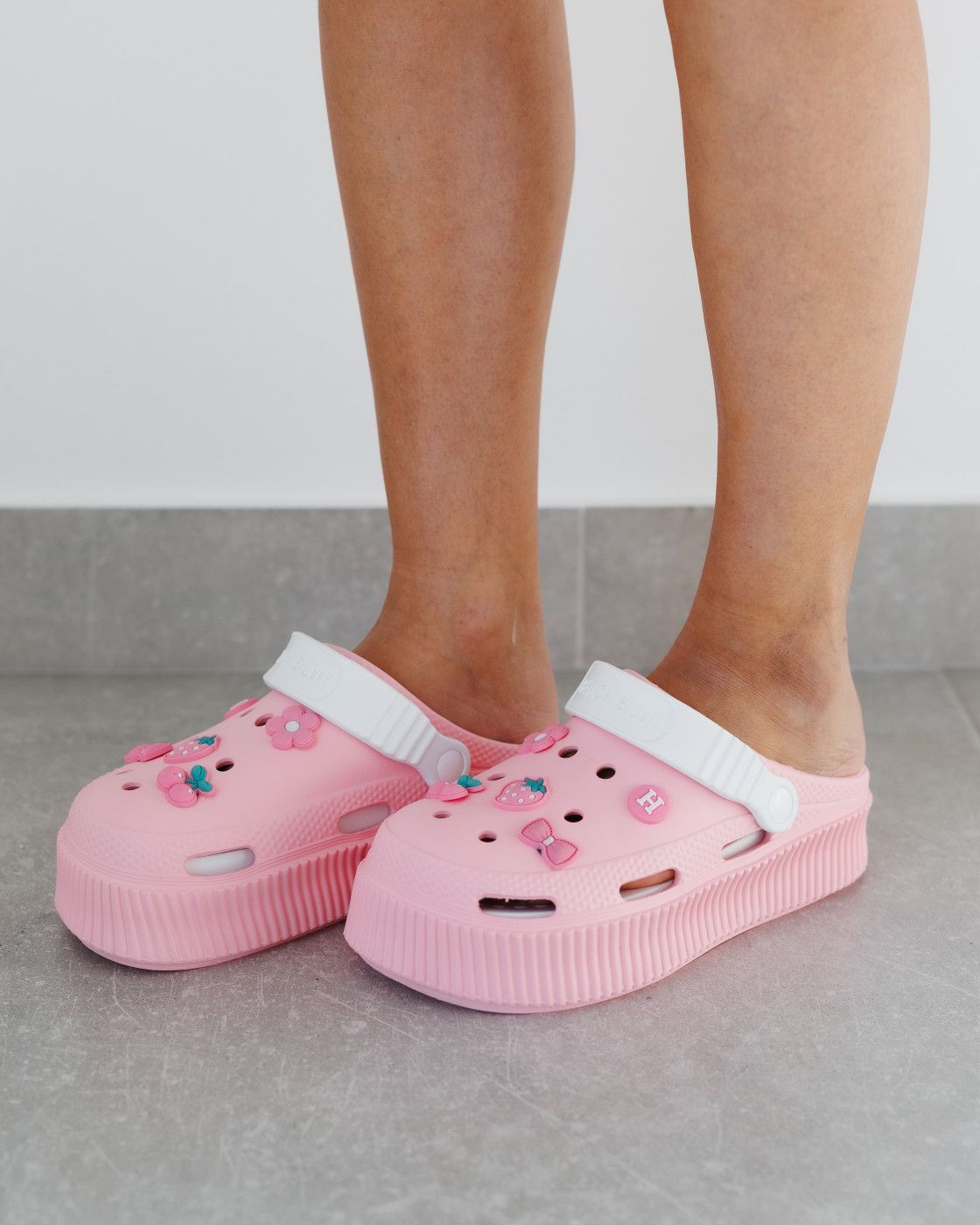Медичні жіночі крокси на платформі Eva peach-white (уцінка/брак)
