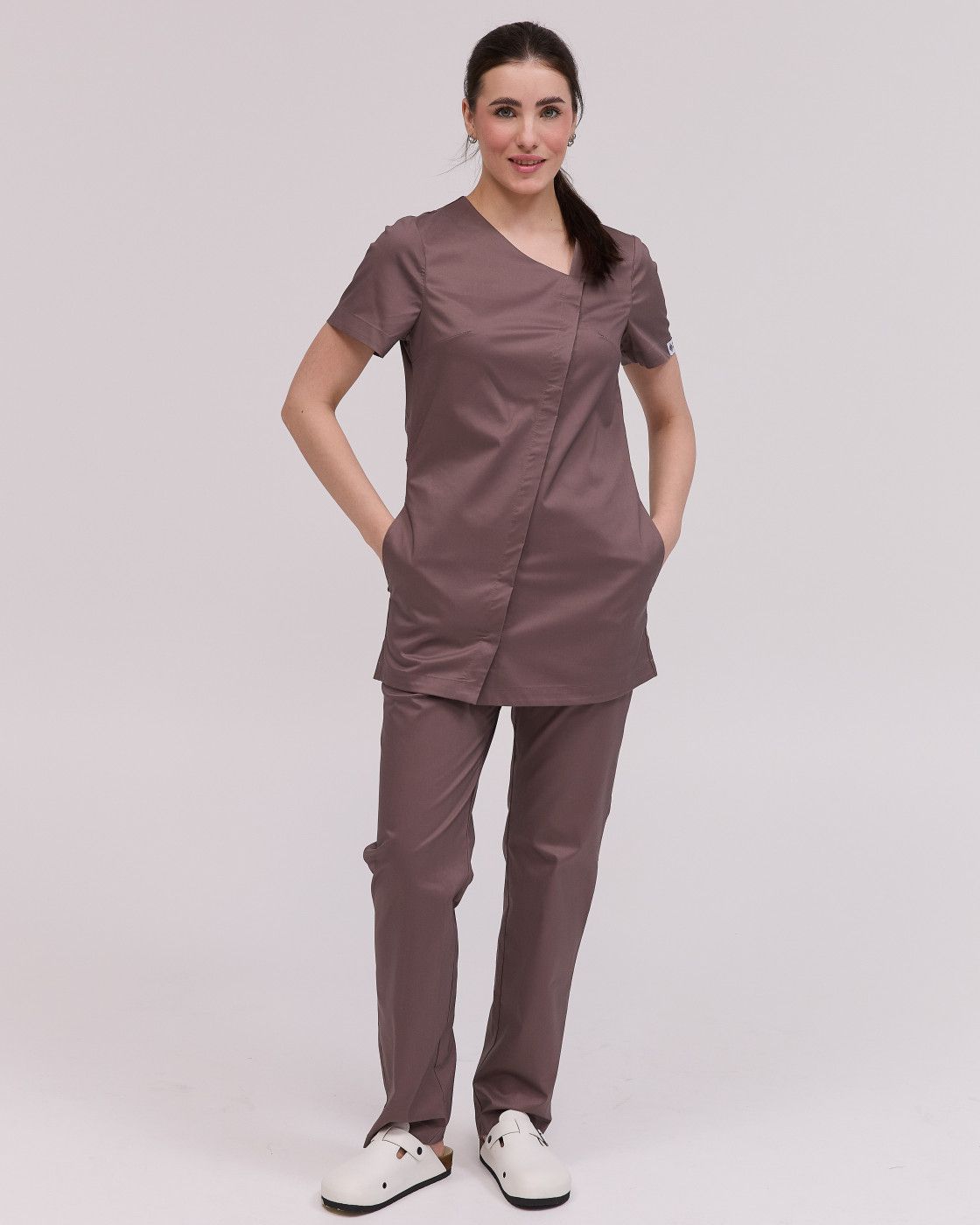 Брюки прямого крою, з бічними кишенями, злегка звужені донизу.
