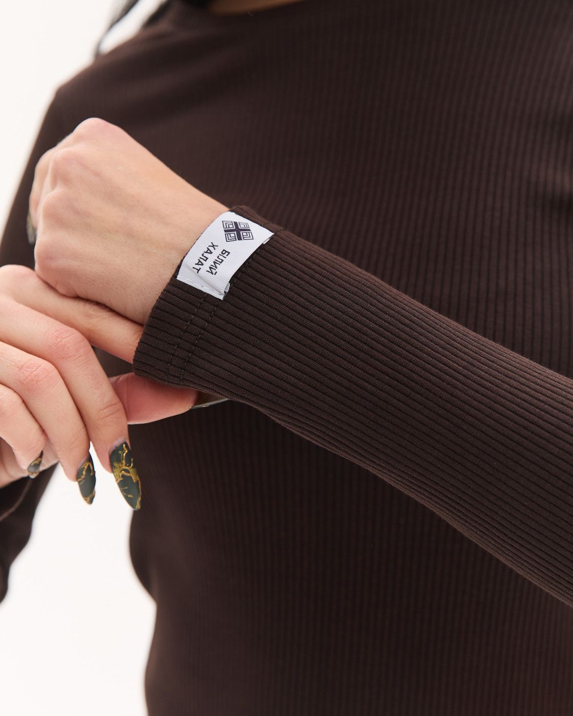 Виріз горловини — круглий, не глибокий, усі шви — із закритим підгином.
