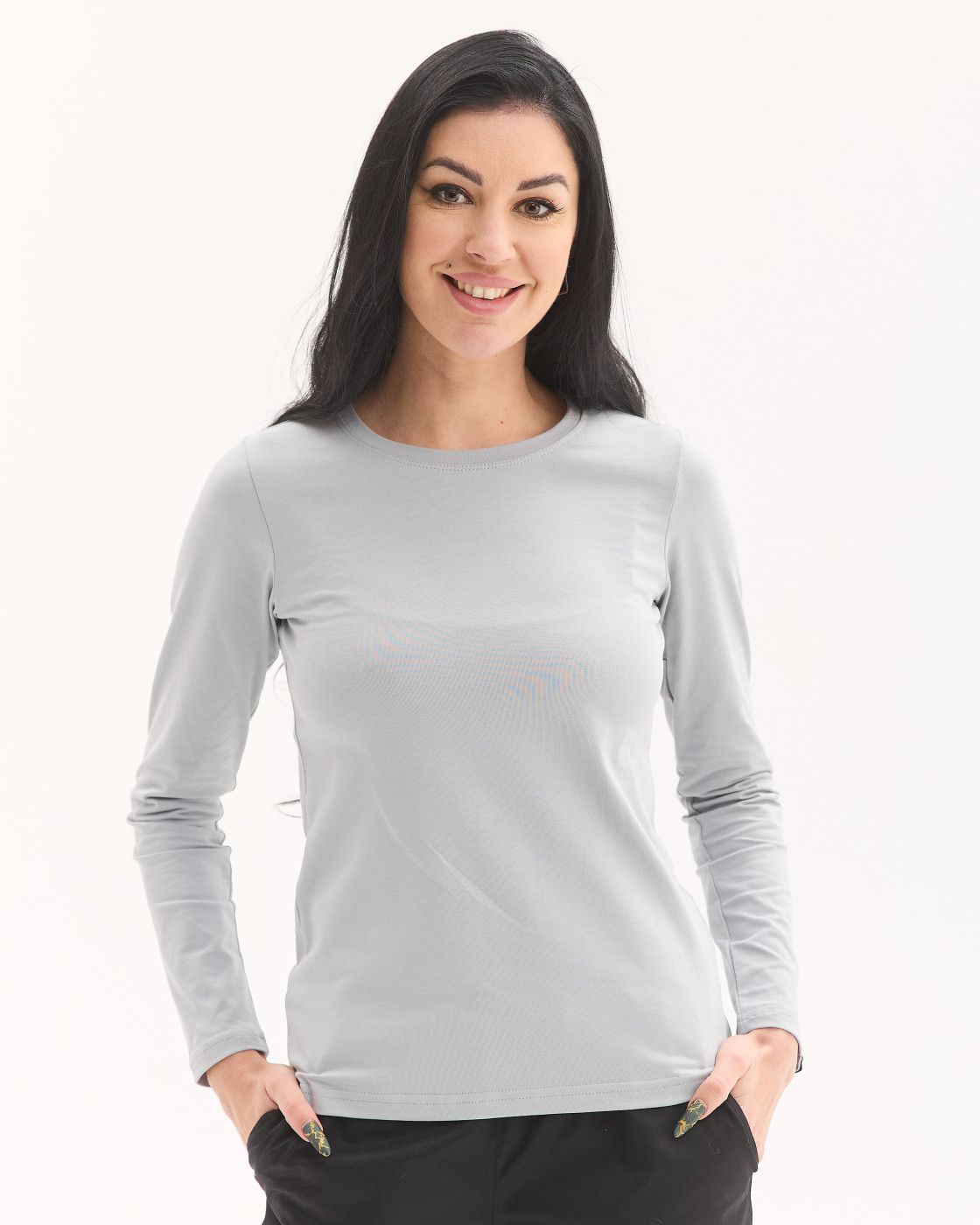 Жіночий лонгслів можна носити під улюблену медичну сорочку або жилет з нашого асортименту, або ж як самостійний елемент робочого гардеробу.