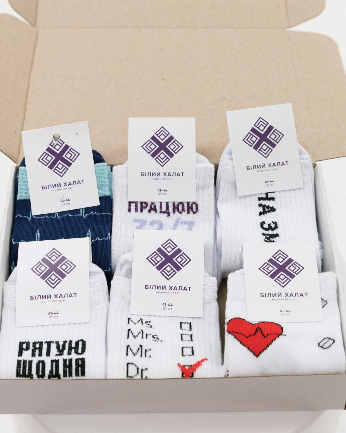 Медичні шкарпетки унісекс з принтом Працюю 32/7