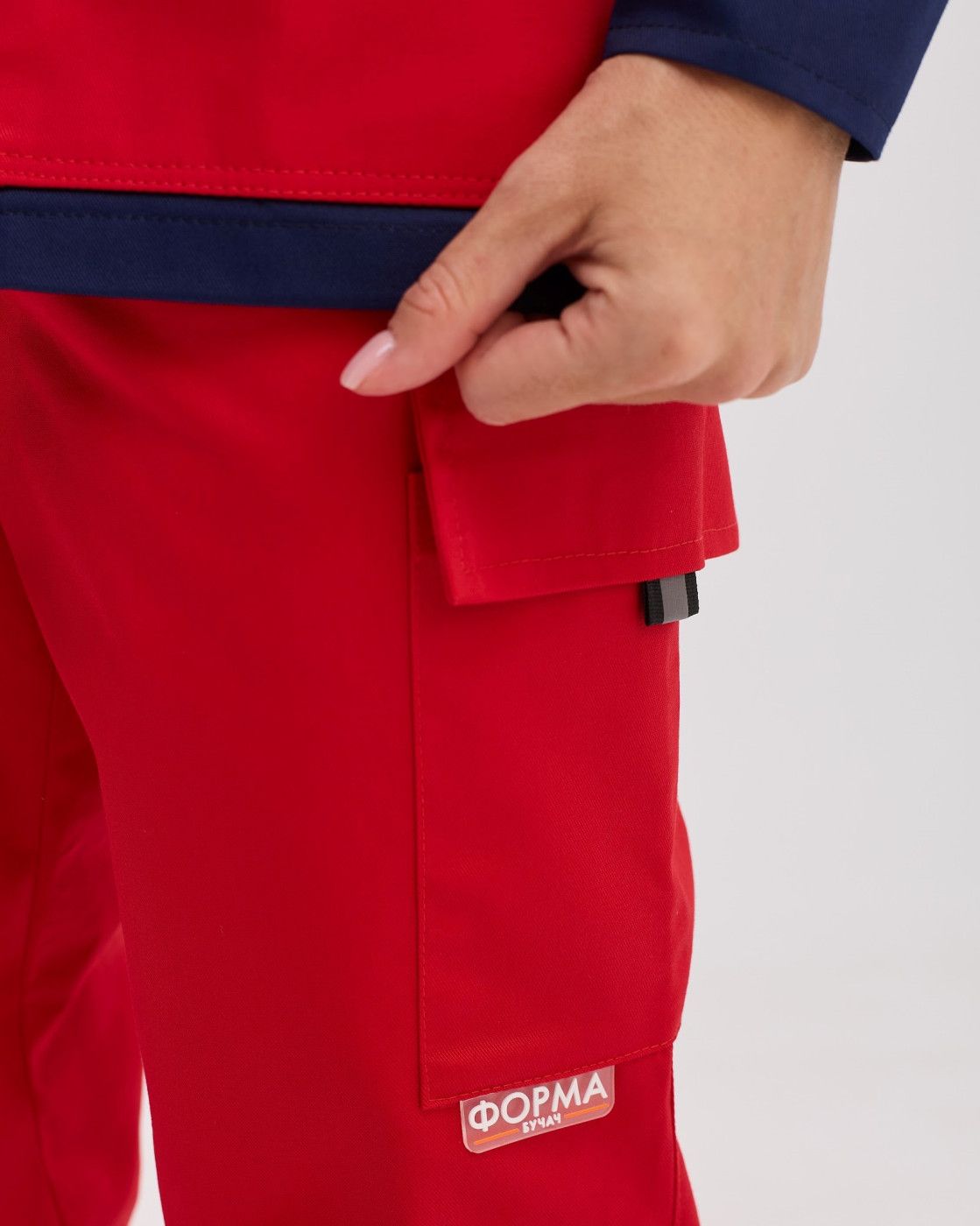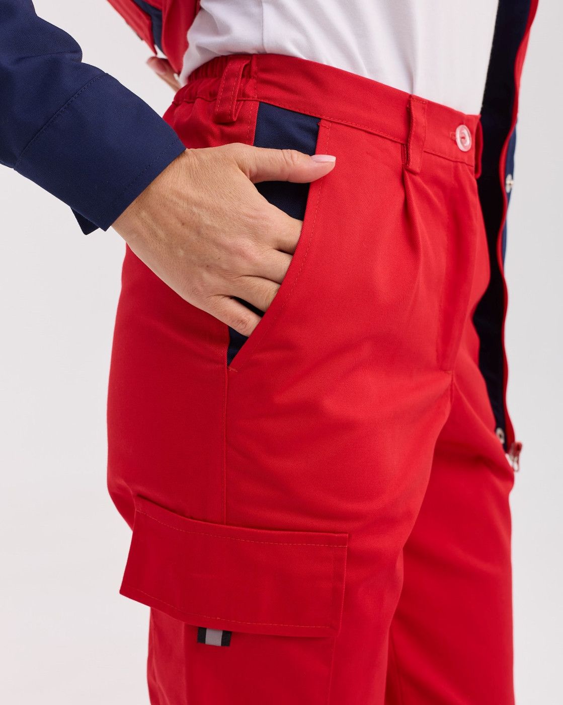 Брюки классического кроя, сверху на резинке, с боковыми карманами у пояса и накладными карманами с клапанами, выше колен.