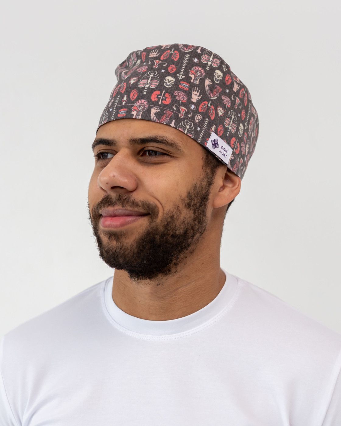 Медицинская классическая шапочка на завязках с принтом Anatomy