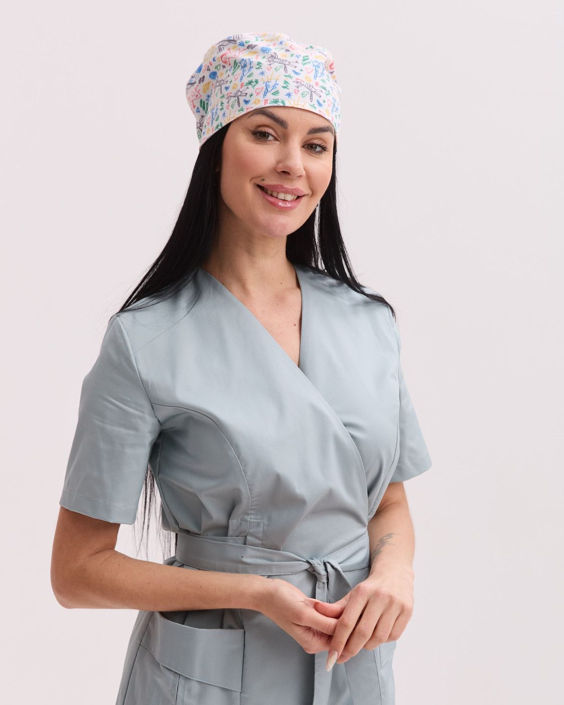 Медицинская классическая шапочка на завязках с принтом Kids