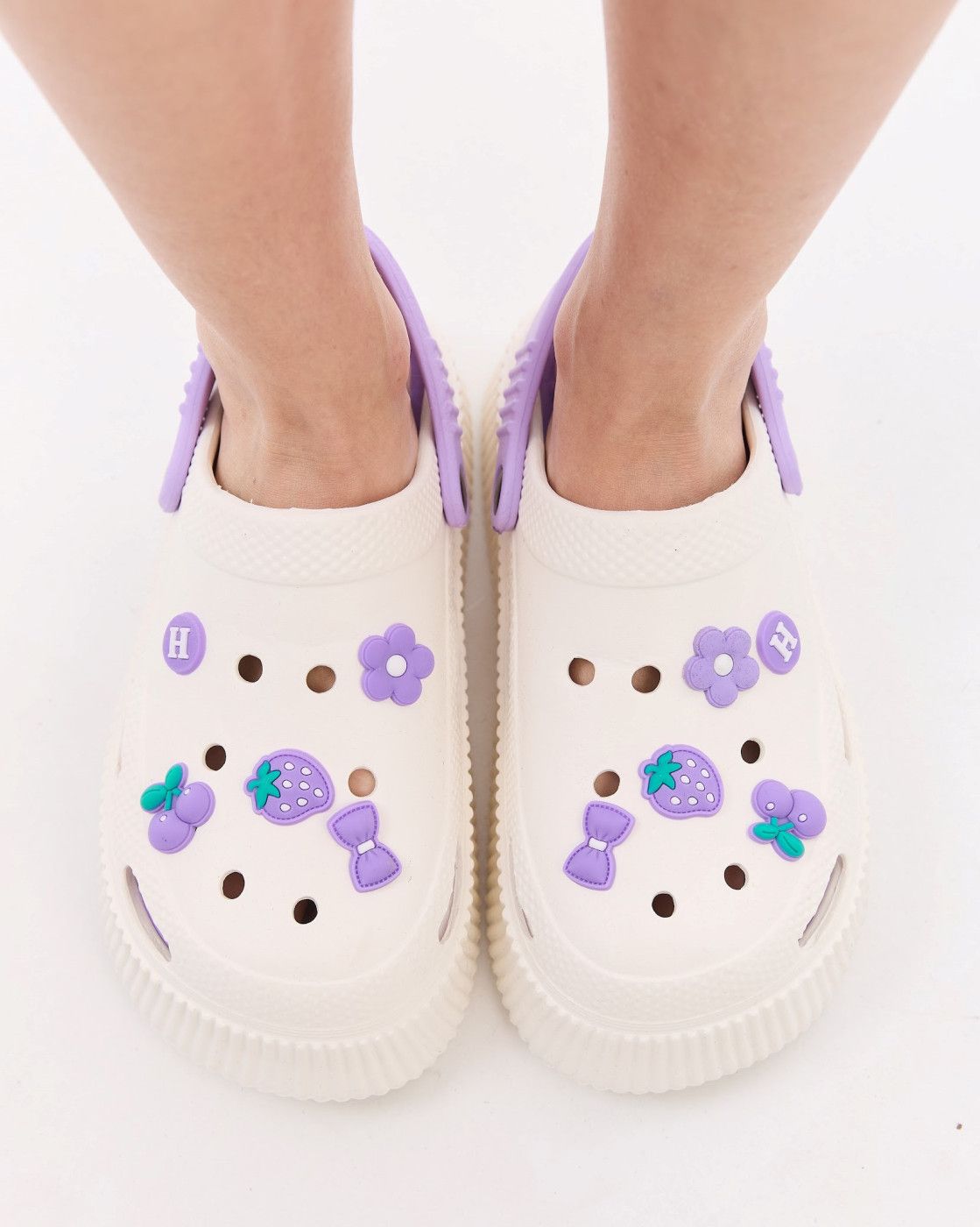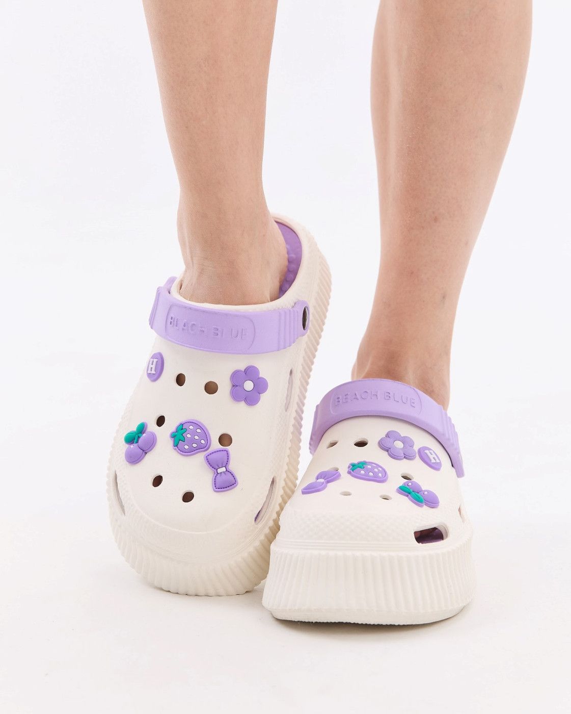Медицинские женские кроксы на платформе Eva бело-лавандовые (уценка/брак)