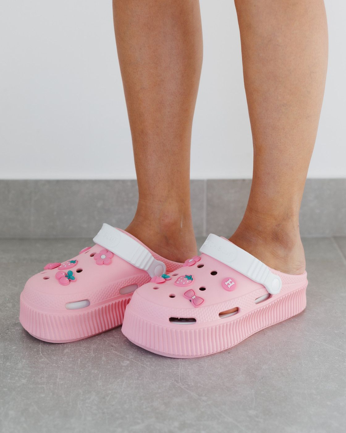 Медицинские женские кроксы на платформе Eva peach-white (уценка/брак)