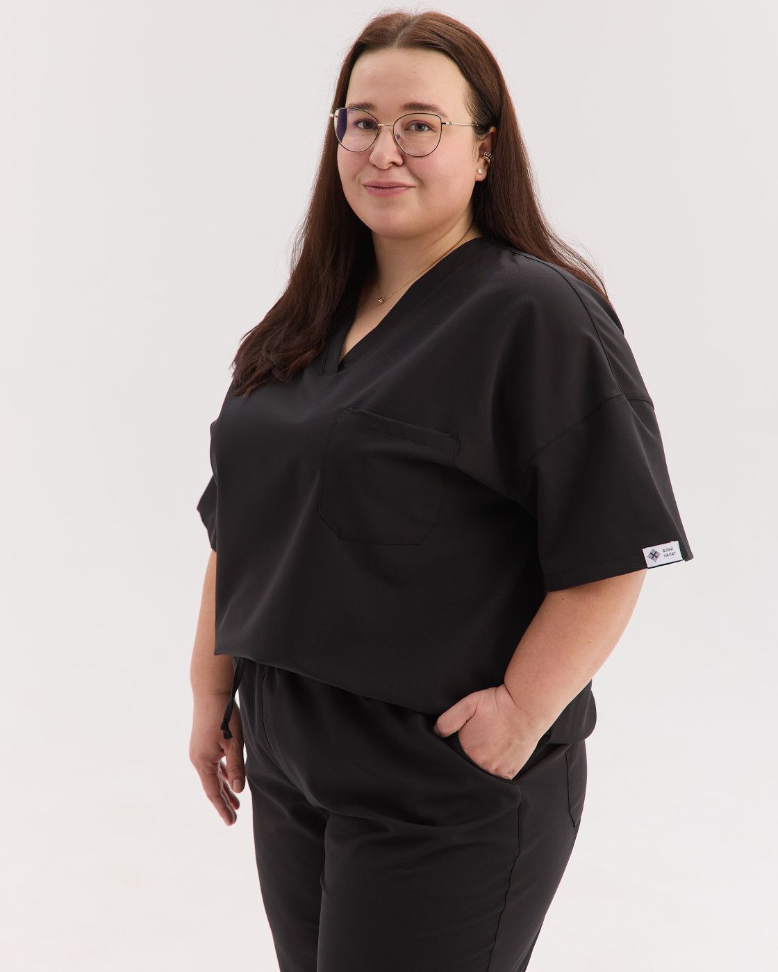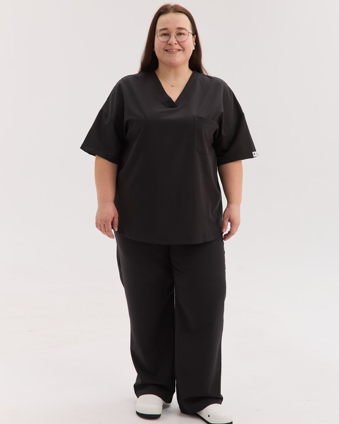 Костюм обеспечивает свободу движений, а ткань — мягкая, эластичная и износостойкая, сохраняет форму и опрятный вид даже после многократных стирок.