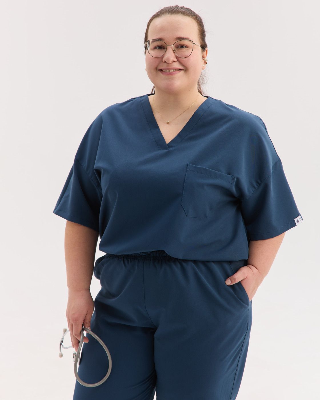 Костюм обеспечивает свободу движений, а ткань — мягкая, эластичная и износостойкая, сохраняет форму и опрятный вид даже после многократных стирок.