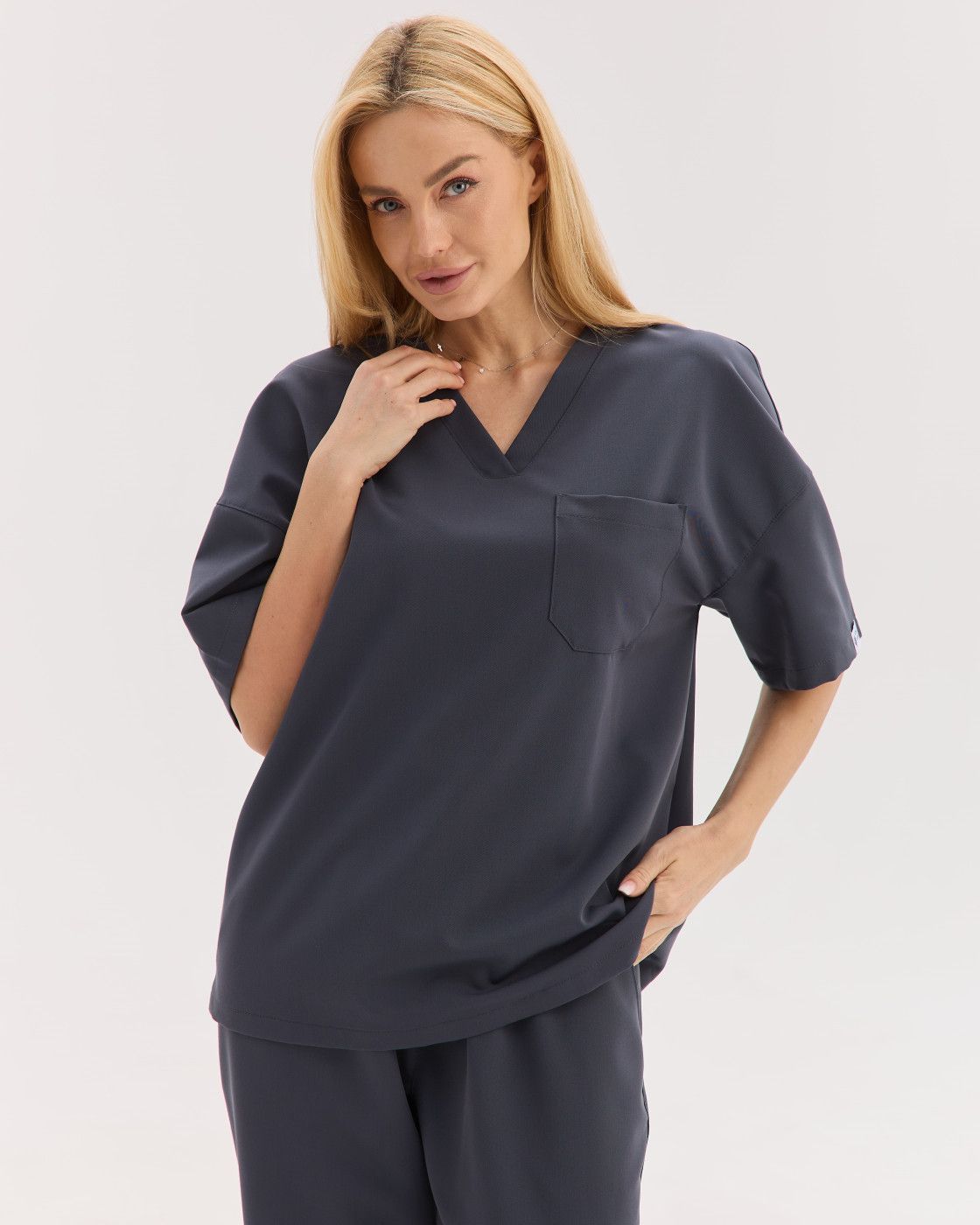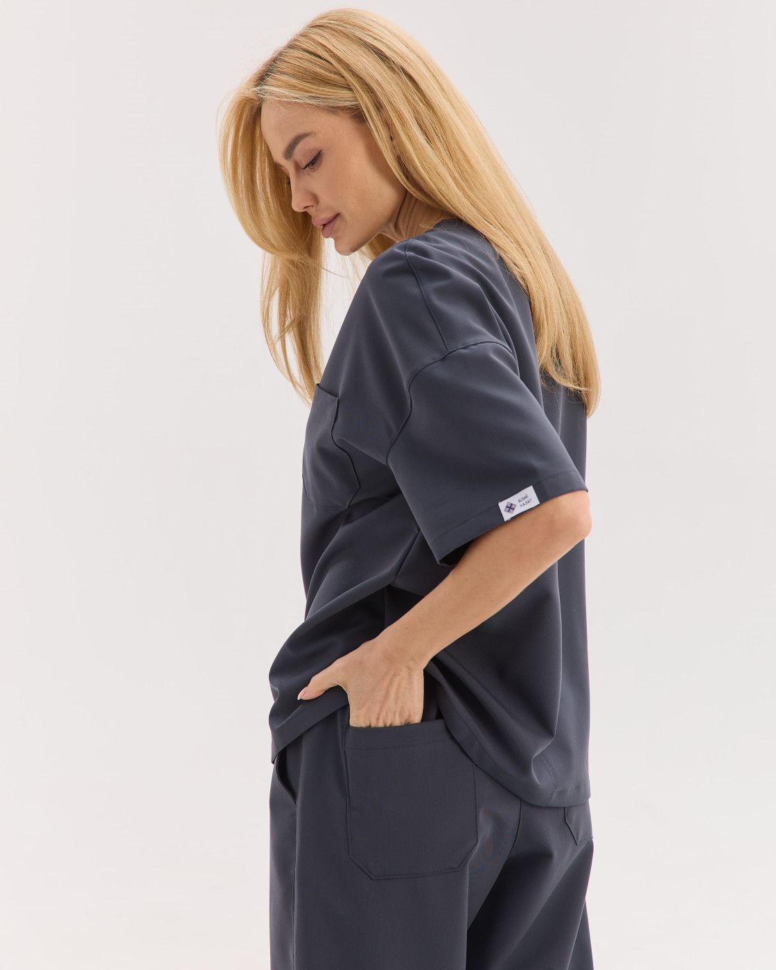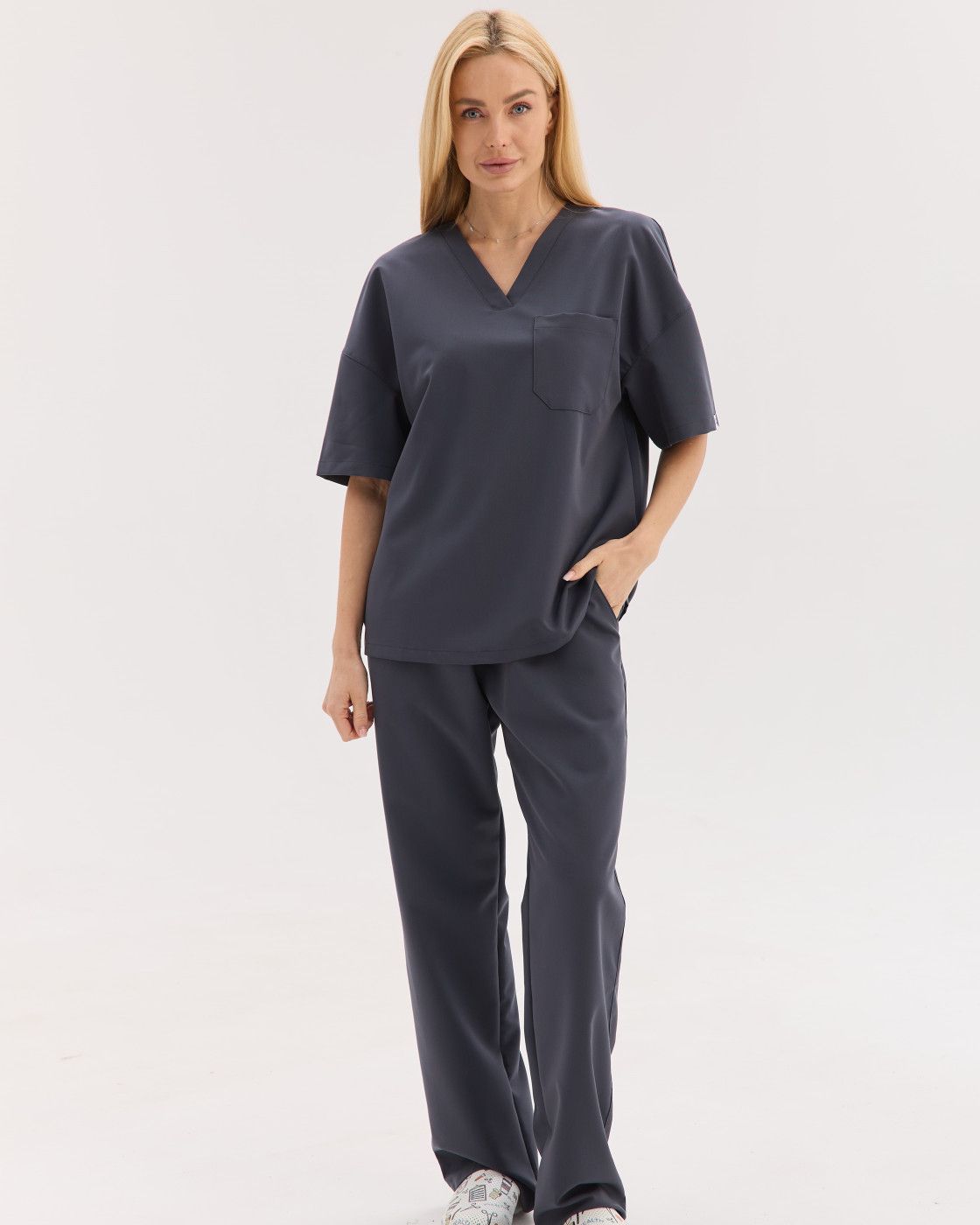 Костюм обеспечивает свободу движений, а ткань — мягкая, эластичная и износостойкая, сохраняет форму и опрятный вид даже после многократных стирок.