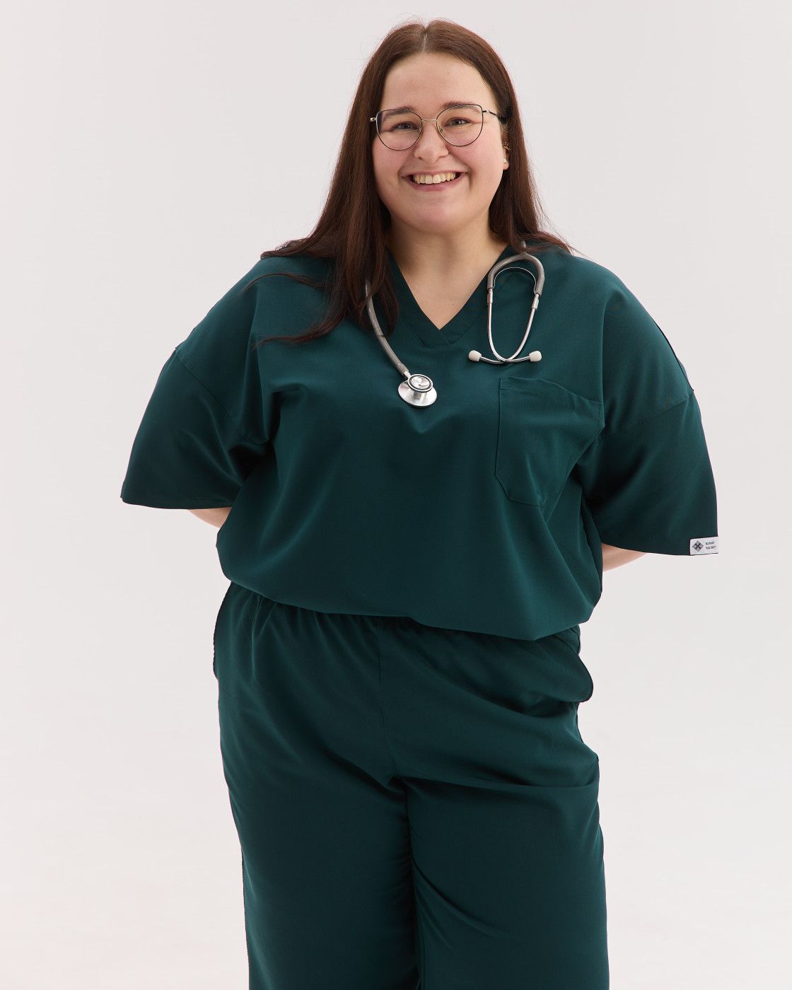 Костюм обеспечивает свободу движений, а ткань — мягкая, эластичная и износостойкая, сохраняет форму и опрятный вид даже после многократных стирок.
