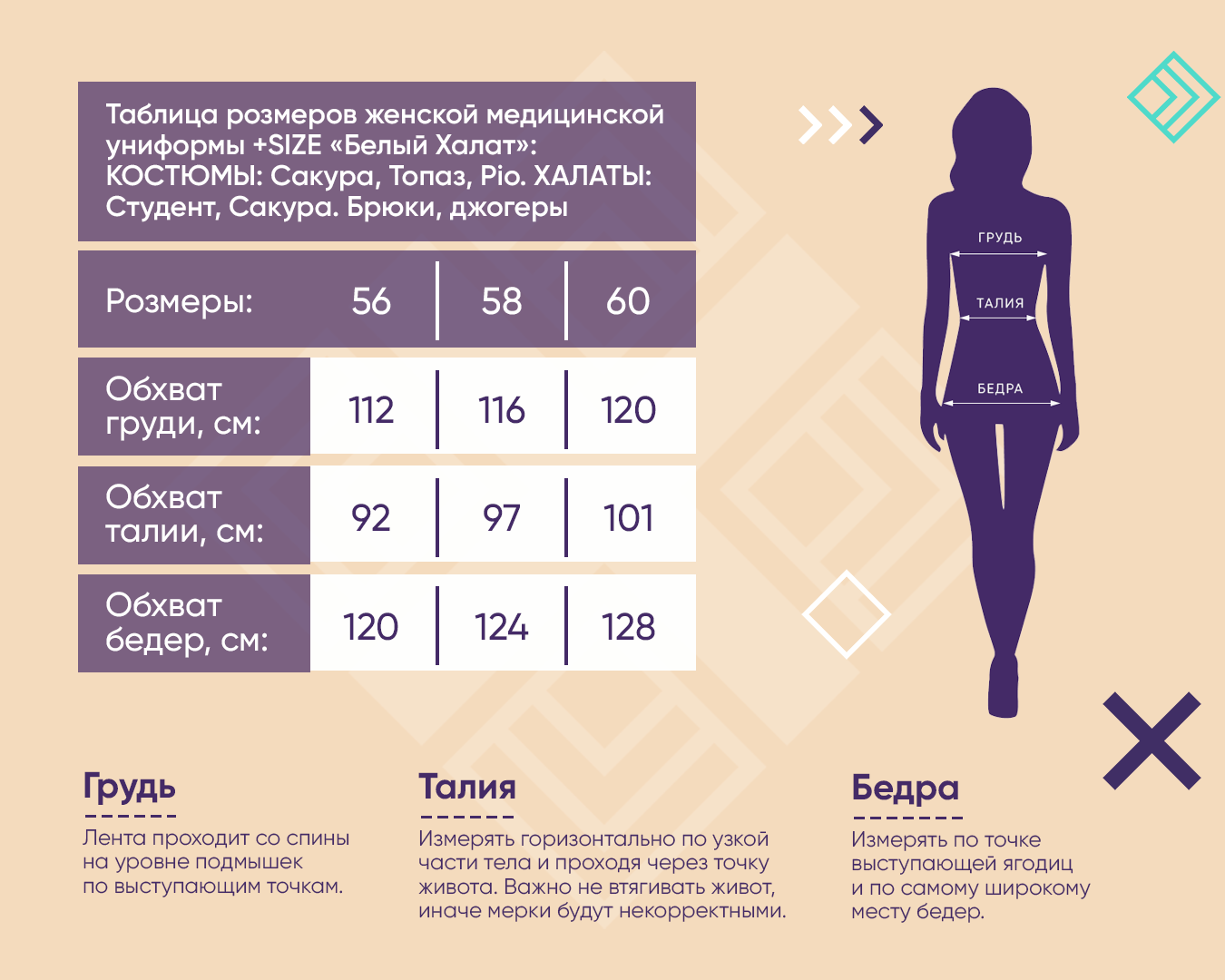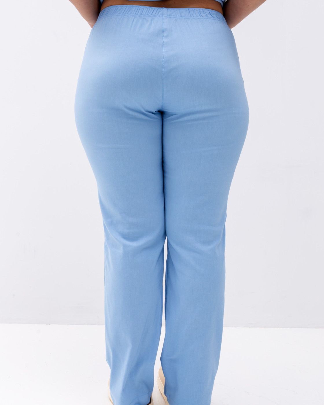 Рубашка с имитацией запаха, дополненная поясом-кулиской и карманами. Медицинские брюки с эластичной резинкой и вместительными карманами.