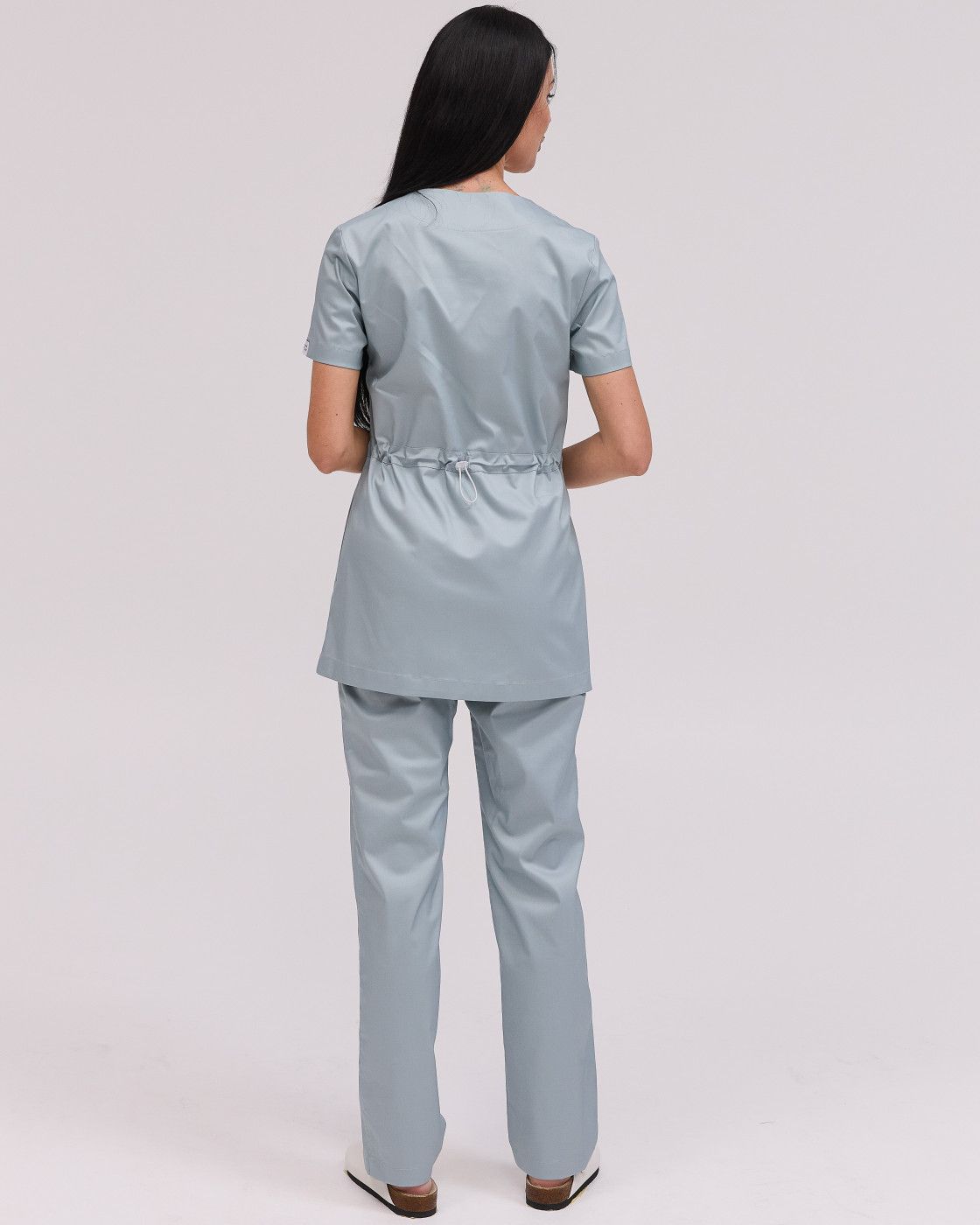Брюки прямого кроя, с боковыми карманами, слегка зауженные к низу.
