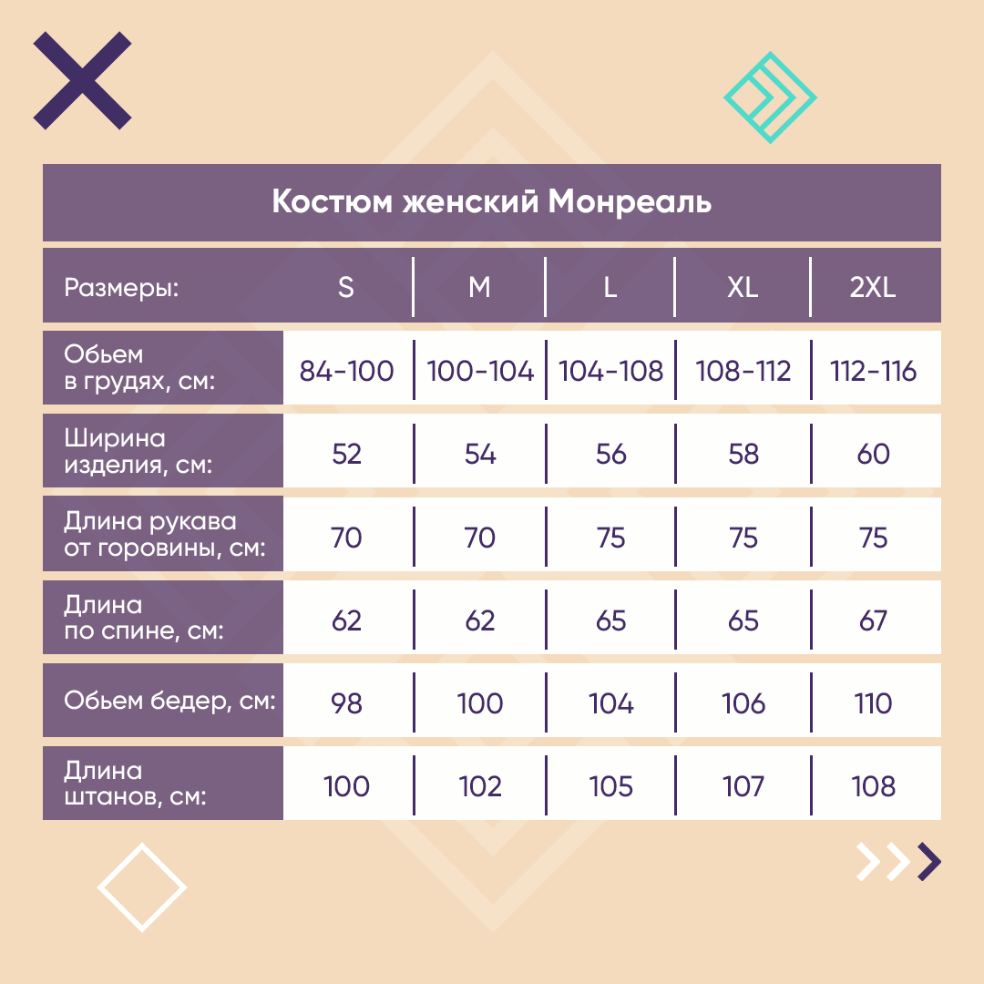 Состоит из медицинского свитшота и брюк. Женский костюм свободного силуэта, брюки с втачными карманами на манжетах, пояс на резинке с регулирующим шнурком; кофта с круглым вырезом, длинные рукава с опущенным плечом на манжете, низ кофты на манжете.